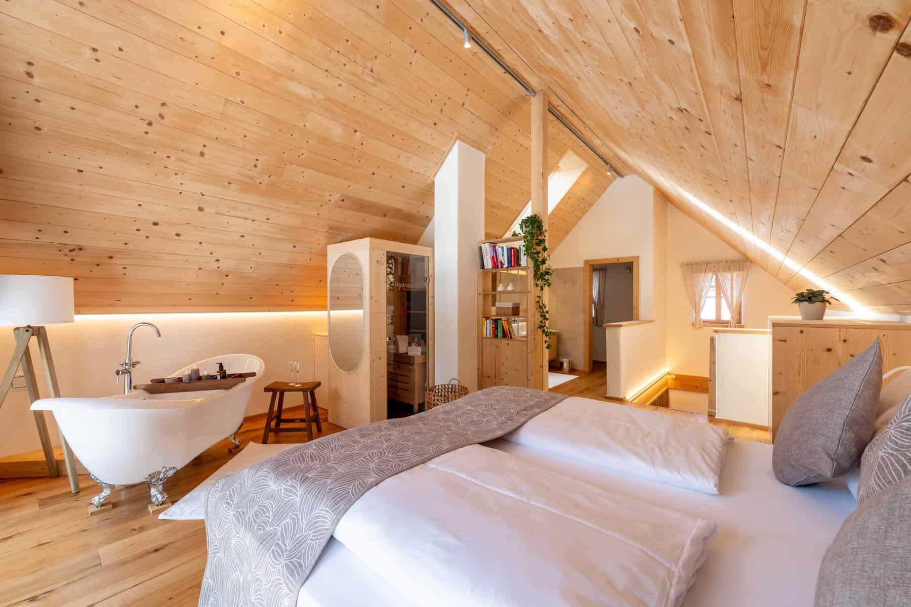 Unsere Aufgabe ist es, die Grundrisse alter Bauernhäuser wiederzuentdecken und sie mit modernem Know-how neu zu errichten. Traditionelle Bautechniken und natürliche Materialien wie Holz, Stroh und Lehm fördern das Wohlbefinden unserer Gäste und fügen sich harmonisch in die Landschaft ein.